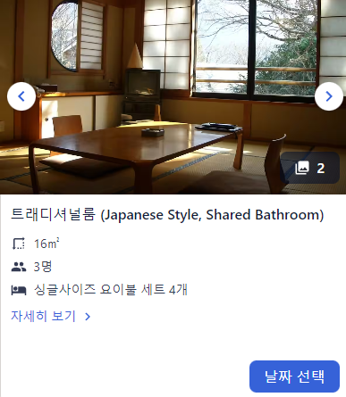내가 묵었던 방은 2층에 위치해 있으며 계단이 있고 엘리베이터는 없다. 짐은 직원분께서 올려다 주신다. 방이 정말 깔끔했다. 단점이라면 날씨가 추울 때는 히터를 켜야 하는데 그러면 너무 건조해져서 껐다 켰다를 반복했다는 점 정도. 저녁식사 시간은 예약하면 그 시간에 1층에 위치하는 식당(?)으로 가면 된다. 정갈하고 양도 푸짐해서 정말 맛있게 처음부터 끝까지 먹을 수 있었다. 식사 이후에는 숙소에 이부자리를 깔아 놓아 주셨다.